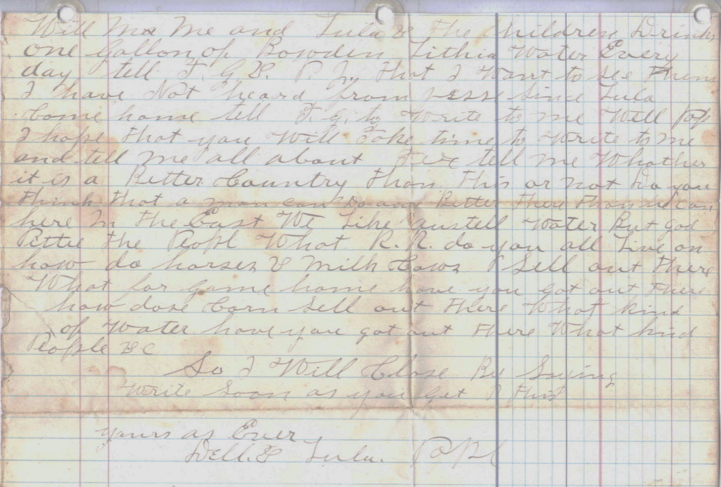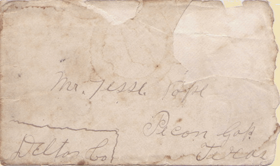 Jesse Pope (1831-1905) was listed in Humphries' definitive book on the Popes in Georgia as son of David Pope whose father John drew land in the 1821 GA Land Lottery in what is now Fulton Co. and became one of the founding families of Atlanta. The line can be traced back to Nathaniel Pope of Maryland whose daughter Anne married Col. John Washington and was the great grandmother of our own George Washington. Jesse Pope was a volunteer in the Georgia Militia of the 469th District of Fulton Co., in 1863. At that time, he was working on his brother John’s ferry at the Chattahoochee River. Some evidence indicates that Jesse operated the Fulton Co. side and John the Cobb Co. side. Which side he met his 2nd wife Mary Ann Wallace, we don’t know, but they moved to Cherokee Co., AL about 1872, close to the Coosa River. The 1886 Original Land Entry land in his name is now under the waters of Lake Weiss. He took a hankering to move west in 1895. This must have been about the time son Dell took to preaching. The story goes that the law was looking for him and he hid in a barn and emerged in a dusty black suit, with top hat and Bible in hand. In June 1896, Lula died of consumption and Delmass died of typhoid fever a week later in a swamp in Austell, Georgia, leaving two orphan boys. The irony, Clayton, that Old Weaver would become a policeman in Centre, AL. He would later go on to supervise the Water Plant there. Of course, we still love the water, "but God pittie the people." |